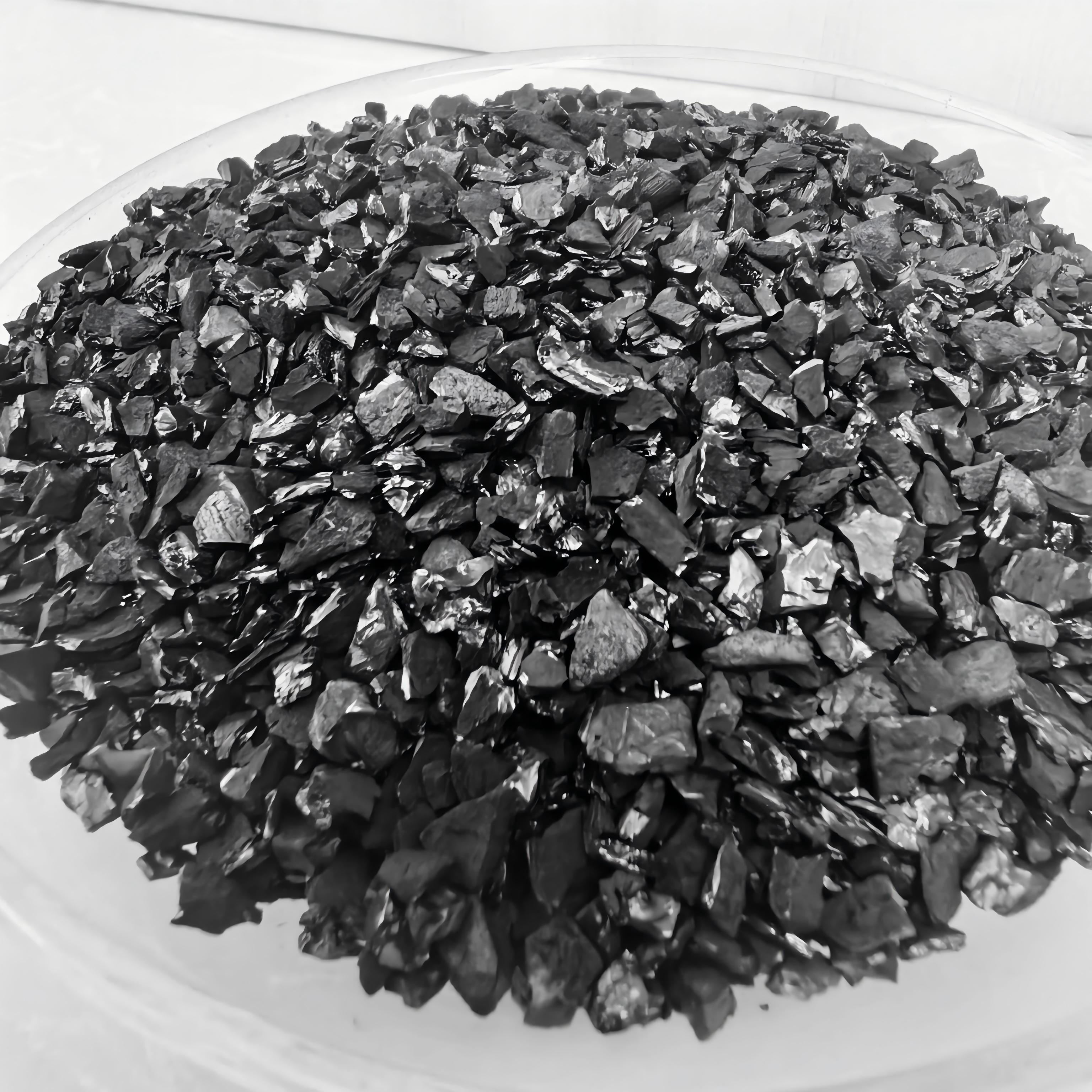 Appearance Characteristics: The product appears as black irregular granules, with full and smooth granules that reduce equipment wear. The particle size ranges from 4-8 mesh (for precious metal extraction), 6-12 mesh (for industrial wastewater), to 20-50 mesh (for drinking water), and can also be customized to 1-8mm. Its bulk density is 0.45-0.55g/cm³, lower than that of coal-based activated carbon; it has good initial floatation in water, with bubbles forming during adsorption and settling at the bottom when saturated. High-quality products have a clean surface, with a pulverization rate below 3%, meeting the requirements for continuous operation.